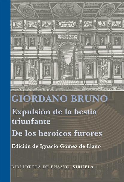 La Expulsión de la bestia triunfante y De los heroicos furores son las dos obras más provocativas que el filósofo napolitano Giordano Bruno escribió en italiano. En la Expulsión de la bestia triunfante, acomete una reforma moral en pro de los valores de la verdad y de la ley, la superación de los particularismos religiosos y un espíritu crítico que representa Momo, el dios burlón por antonomasia. Bruno da a su reforma un encuadre cósmico y la forma de diálogo entre los dioses que llevan a cabo la expulsión y representan las facultades humanas. De los heroicos furores trata del frenesí amoroso, yendo de la animalidad más ruda a la intelectualidad más refinada. Bruno inserta en esta obra una buena parte de su poesía junto con las sugestivas reflexiones filosóficas que aquélla le inspira, al tiempo que dispone en el escenario de la filosofía un amplísimo elenco de imágenes y emblemas amorosos. Además, en esta obra exhibe lo mejor de su arte literario y lo más «heroico» y «furioso» de su pensamiento.