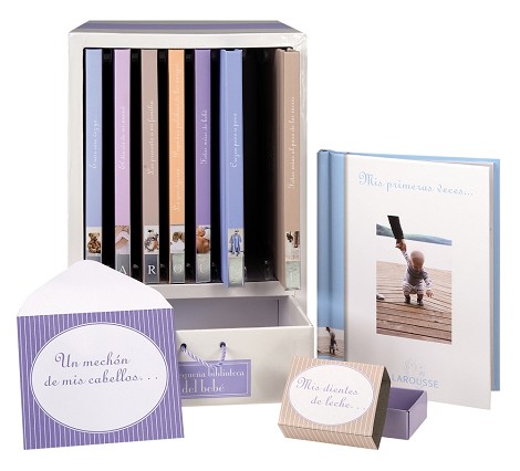 Un magnífico regalo para festejar un feliz acontecimiento La Pequeña Biblioteca del Bebé está compuesta por 8 mini álbum que los padres pueden ir complementando, de manera que sirvan como un recuerdo de los primeros meses de vida del bebé. Cada volumen está dedicado a un aspecto de estos primeros meses de vida: - las fotos de la familia - el diario de la madre - las primera vez que... - un medidor - fotos del bebé mes a mes... Además, el cofre presenta también un cajón, con un sobre para guardar un mechón de pelo, una cajita para los primeros dientes de leche y unas pegatinas que sirvan como recuerdo de una época para recordar siempre.