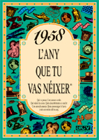 El llibre de 1958 conté una selecció de notícies curioses que van passar aquell any, imatges, anuncis i en general tot allò per entendre com era el món aquell any, com era la moda, què es va inventar, quins anuncis hi havia, les cançons i les pel·lícules d'èxit, quant valien les coses, quins personatges famosos destacaven, i moltes coses més. Aquest llibre de 1958 forma part de la popular col·lecció "L'any que tu vas néixer". Un detall ideal per al protagonista de la festa d'aniversari, o per sorprendre a cadascun dels convidats del teu proper sopar amb amics o família. Posa el llibre de l'any de cada convidat al seu lloc de la taula i veuràs la sorpresa quan se'l trobin. De seguida es trencarà el gel amb converses apassionades plenes de records. La col·lecció "L'any que tu vas néixer" va de 1920 a 2003.