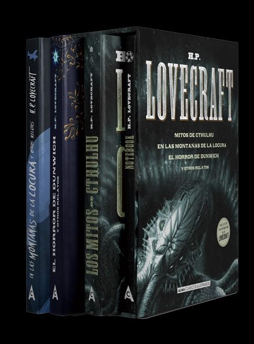 Lujosa edición en estuche de los títulos más representativos de H.P. LOVECRAFT: LOS MITOS DE CTHULHU, EN LAS MONTAÑAS DE LA LOCURA y EL HORROR DE DUNWICH y otros relatos. Además de estos 3 títulos el pack incluye un Notebook especialmente diseñado, a juego con los libros.