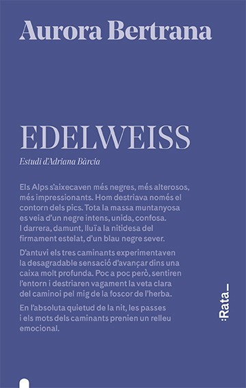 Aquest tercer llibre d'Aurora Bertrana tanca la Trilogia dels Viatges. A Edelweiss trobem la millor escriptora de viatges en la literatura catalana. Aquest cop el text no és la narració personal i antropològica de Paradisos oceànics, ni al crònica periodística d'El Marroc sensual, sinó que descobrim la primera novel·la de l'autora, exactament la història que va desvetllar la seva vocació literària. A Edelweiss la prosa intensa i colorista d'Aurora Bertrana es posa al servei d'una història on conflueixen bellesa i tragèdia, aconseguint una descripció corprenedora dels Alps suïssos.
