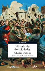 Historia de dos ciudades (1859), una de las pocas novelas históricas de Charles Dickens, se inicia con la fantasmagórica «resurrección» del doctor Manette, tras años de injusto confinamiento en la prisión de la Bastilla. Trastornado, irreconocible, su hija Lucie y un antiguo amigo lo llevan a Londres, donde poco a poco va recuperando el juicio y la salud. Pero Charles Darnay, el joven francés expatriado que pretende a Lucie y que acabará casándose con ella, le devolverá a los antiguos horrores en un azaroso regreso a París que pondrá en peligro su vida y la de su familia. El Londres pacífico pero grotesco del rey Jorge III y el París clamoroso y ensangrentado de la Revolución Francesa son las dos ciudades sobre cuyo fondo se escribe esta inolvidable historia, donde el acento patético es genuino y la intriga en todo punto apasionante. Violentas escenas de masas, estallido de hambre y venganza, turbios procesos, espías y conspiradores, héroes fracasados y héroes a su pesar; dobles identidades, culpas y expiaciones se mezclan en una trama artística y perfecta, llena de sorpresas y magistralmente elaborada por un Dickens en uno de sus mejores momentos creativos. Una buena ocasión para descubrir por qué Mark Twain decía leer esta novela una vez cada dos años... por lo menos.