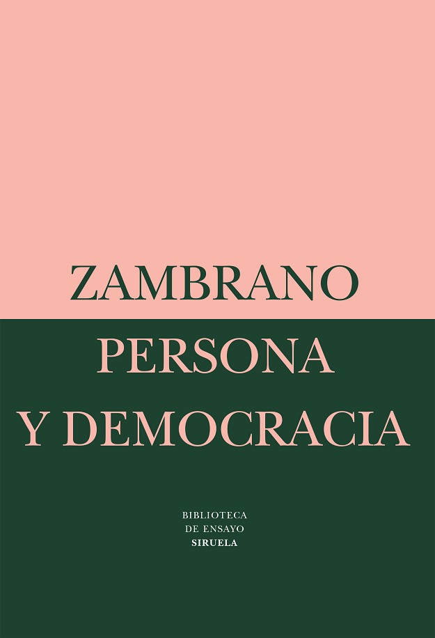 María Zambrano publicó por primera vez su libro Persona y democracia en 1958, en circunstancias –según ella misma confiesa en su prólogo de 1987– «bien diferentes» a las que vivimos hoy. Lo que las nuevas circunstancias revelan es la renuncia del hombre a ser persona, a vivir humanamente; habita en un eterno presente donde la historia ya no se constituye como proyecto, donde no existe progreso ni democracia, sino el poder absoluto de dioses oscuros ávidos de sacrificios humanos: la democracia y la historia verdaderas –humanas y, por tanto, morales– parecen empresas condenadas a la destrucción. «Y entonces, ¿a cuento de qué viene la publicación de este libro? Muy simplemente lo diré: como un testimonio, uno más, de lo que ha podido ser la historia, de lo que pudo ser.»Pudo ser la manera de conocer el medio más propio del hombre, el tiempo; el paso del modo trágico de hacer historia al modo libre de llevarla a cabo, o el despertar del hombre del sueño a su verdadero ser, a su ser persona y no individuo. Pudo ser, en definitiva, la fe en el porvenir, en una sociedad sin temor a la realidad. Décadas después, lo que pudo haber comenzado está aún por llegar.